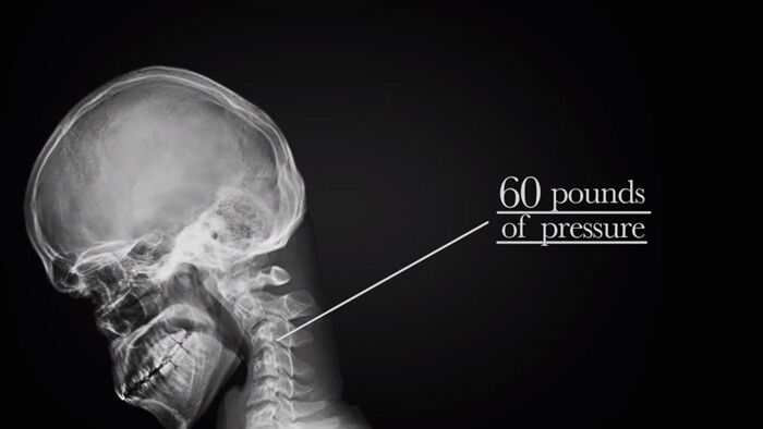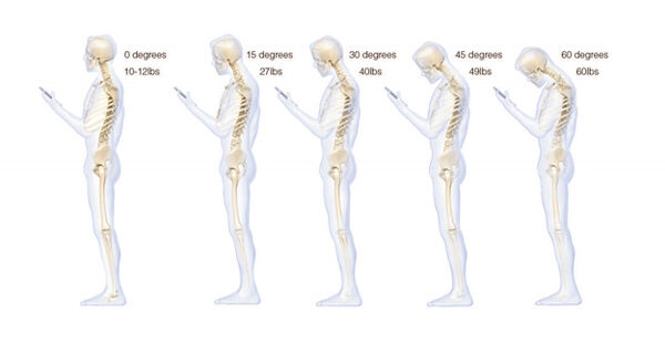 - Leher menunduk 30 derajat, tulang belakang mendapat beban sekitar 18.1KG